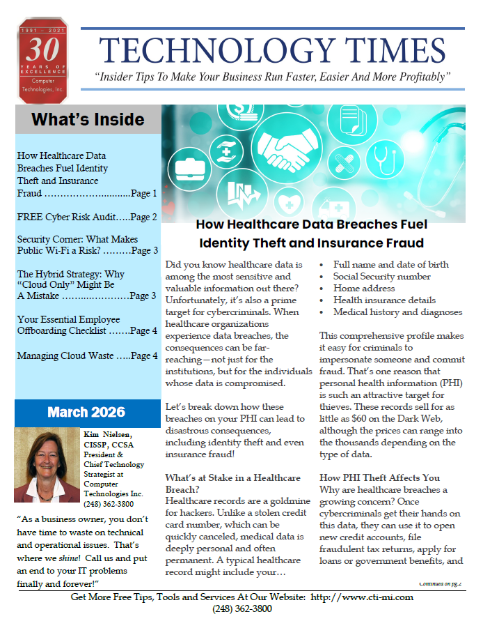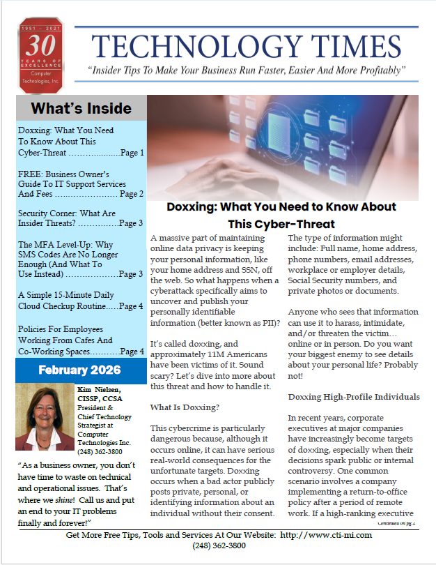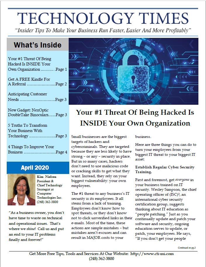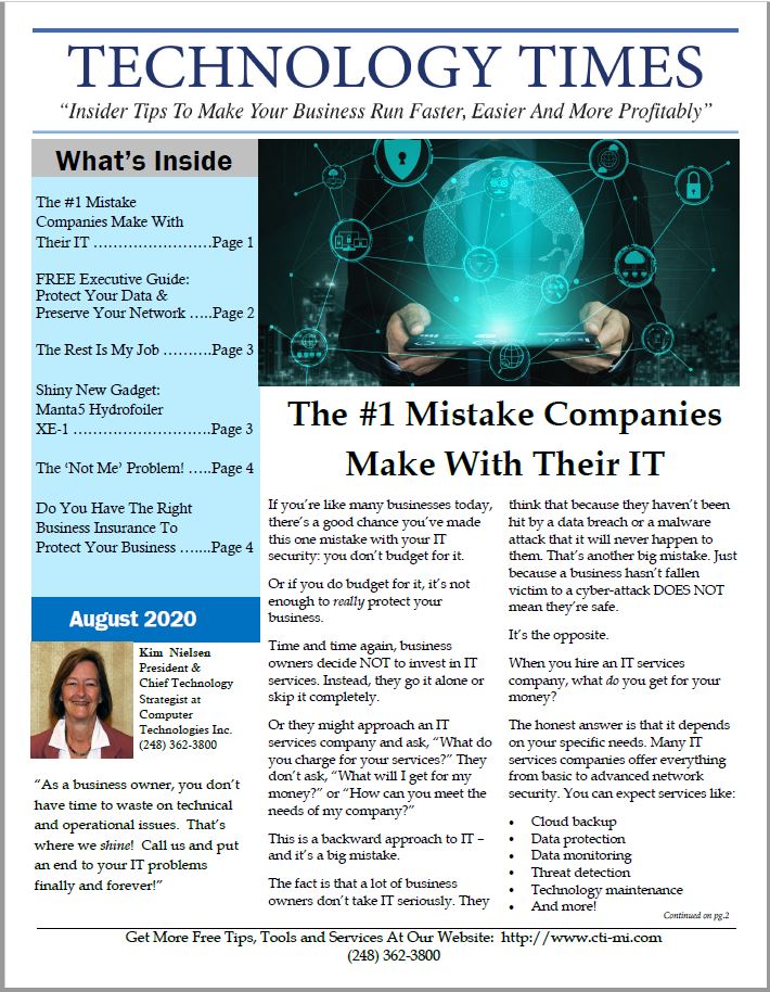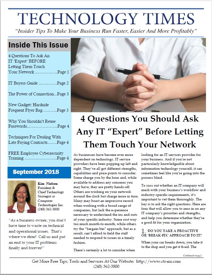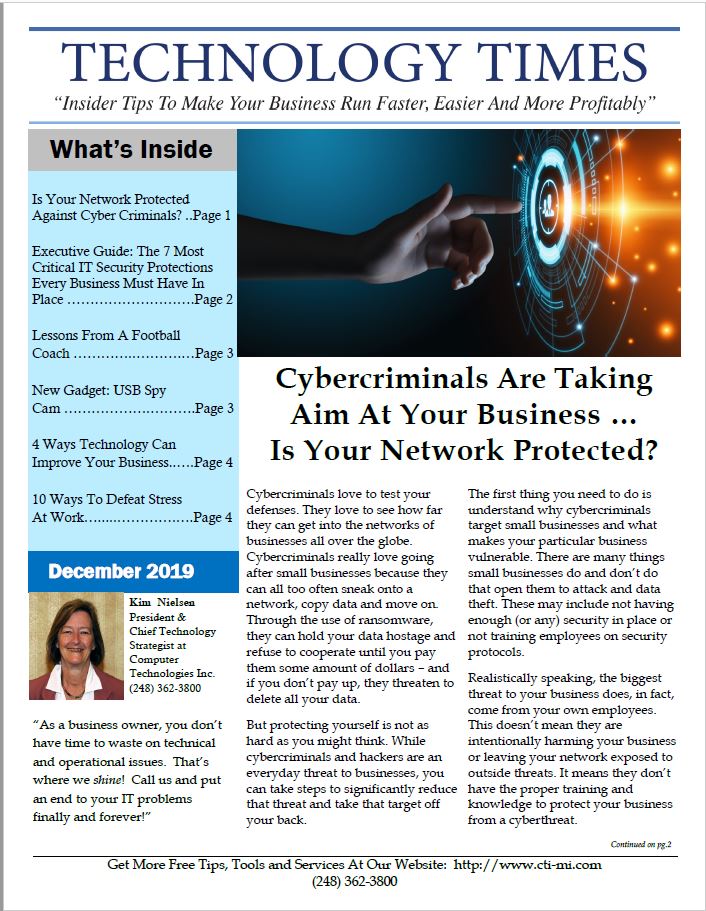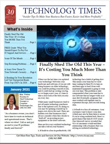 In our monthly newsletter, we spotlight the latest technology trends affecting your business and provide great business tips, reminders, and insights! Click on a link below to read our existing editions and complete the form to the left for us to send you a paper copy each month – totally FREE!